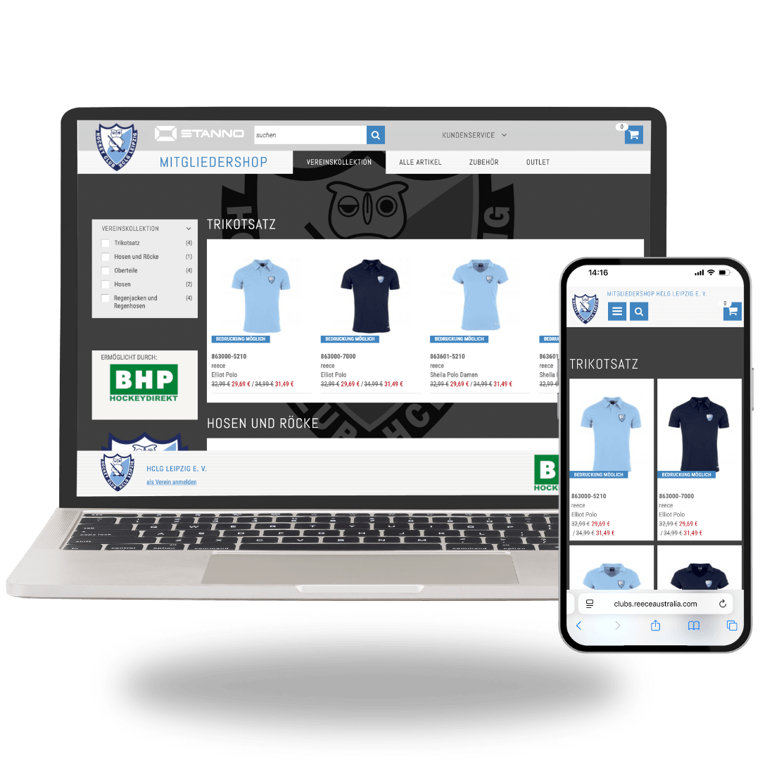 Online-Clubshop mit individueller Kollektion und professioneller Bedruckung